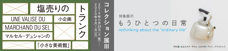 マルセル・デュシャン(1887−1968)による《トランクの中の箱》は、彼自身の主要作品のミニチュアや写真複製等で構成されています。革製のトランクに全ての要素を収納することができ、「持ち運びできる小さな美術館」(デュ シャン)として作られています。このデュシャンの言葉を文字通り受け取るひとつの方法として、本企画では作品中の個々の要素の提示を試みます。