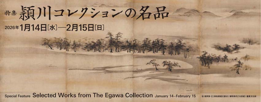 頴川コレクションからまとまった数の作品を展示するのは、令和3年度の受贈記念展以来4年ぶりになります。千利休の創意を受けて制作された長次郎《赤楽茶碗 銘 無一物》、名だたる武将・茶人に愛玩された《肩衝茶入 銘 勢高》など、コレクションを代表する茶道具の名品はもとより、三田藩九鬼家旧蔵の伝能阿弥《三保松原図》、播磨・明石藩士のために描かれた渡辺崋山《春渓高隠図》をはじめとする、兵庫ゆかりの作品もご覧いただきます。