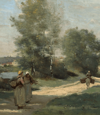 緑豊かな田園風景や農民の素朴な姿を題材にしています。従来の方法に従い作品はアトリエで仕上げていましたが、それらは戸外で風景を忠実に捉えたスケッチから始まったのでした。自然光や事物の動きをたくみに描写した色彩や筆触は、後の印象派の到来を予告してもいます。