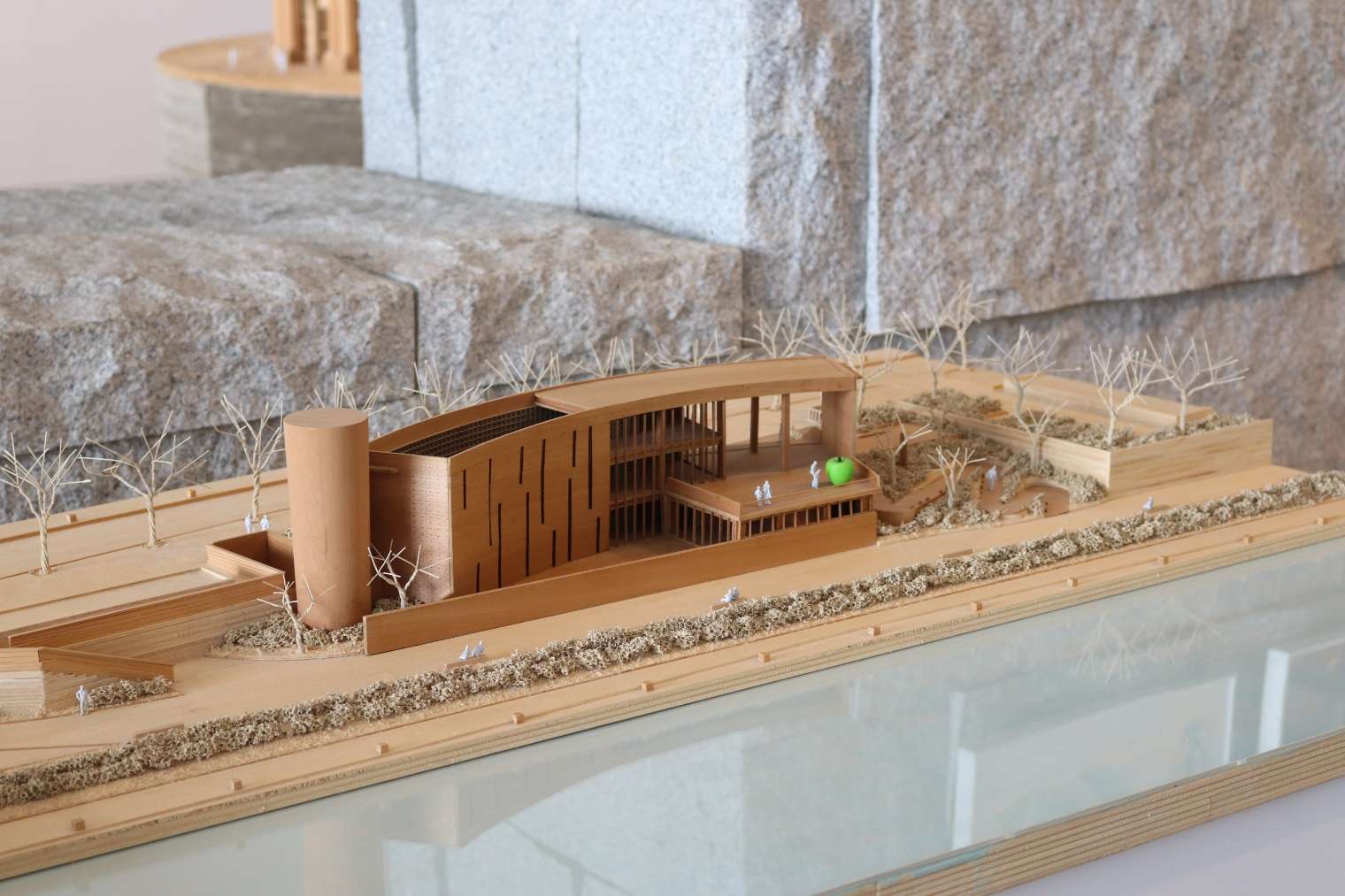 ここでは安藤がこれまで世界中で手がけてきた美術館を紹介しています。瀬戸内海に面したここ兵庫県立美術館から、「青りんご」の先に広がる海の向こうへと、ぜひ目を向けてみてください。
