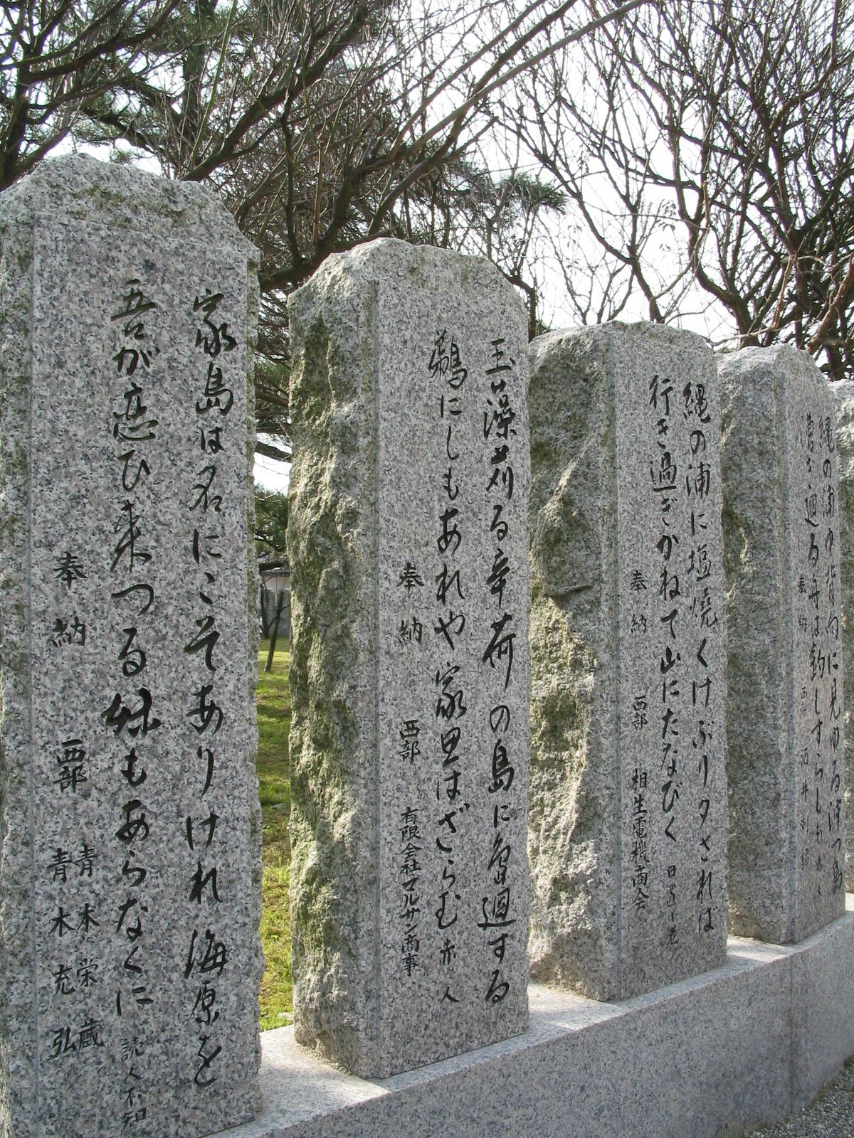高砂市曽根町曽根天満宮参道(玉垣) 室町以前 碑文 玉藻苅る辛荷の島に島廻(しまみ)する 鵜にしもあれや家思はざらむ 地区 東播磨 作者 山部赤人( やまべのあかひと ) 建立年代/その他 平成5年(1993)10月 文学碑マップ 加古川に戻る 文学碑マップ一覧に戻る 他の地域を見る 但馬 丹波、篠山 北磻磨 明石 加古川 姫路、たつの 相生 神戸 芦屋、西宮、尼崎 伊丹、宝塚 猪名川 淡路 洲本 南あわじ