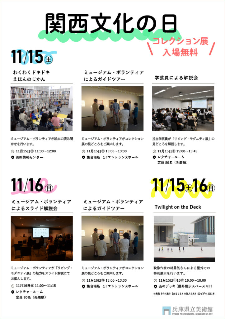 11月15日(土)16(日)は関西文化の日として、コレクション展無料に加えて、解説会や、ガイドツアーなどイベントも開催します。