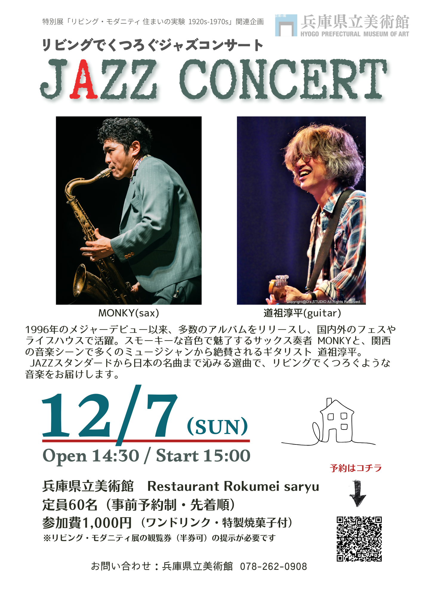 イベント大人向け12月7日(日) 特別展「リビング・モダニティ 住まいの実験 1920s-1970s」関連企画「リビングでくつろぐジャズコンサート」開催!