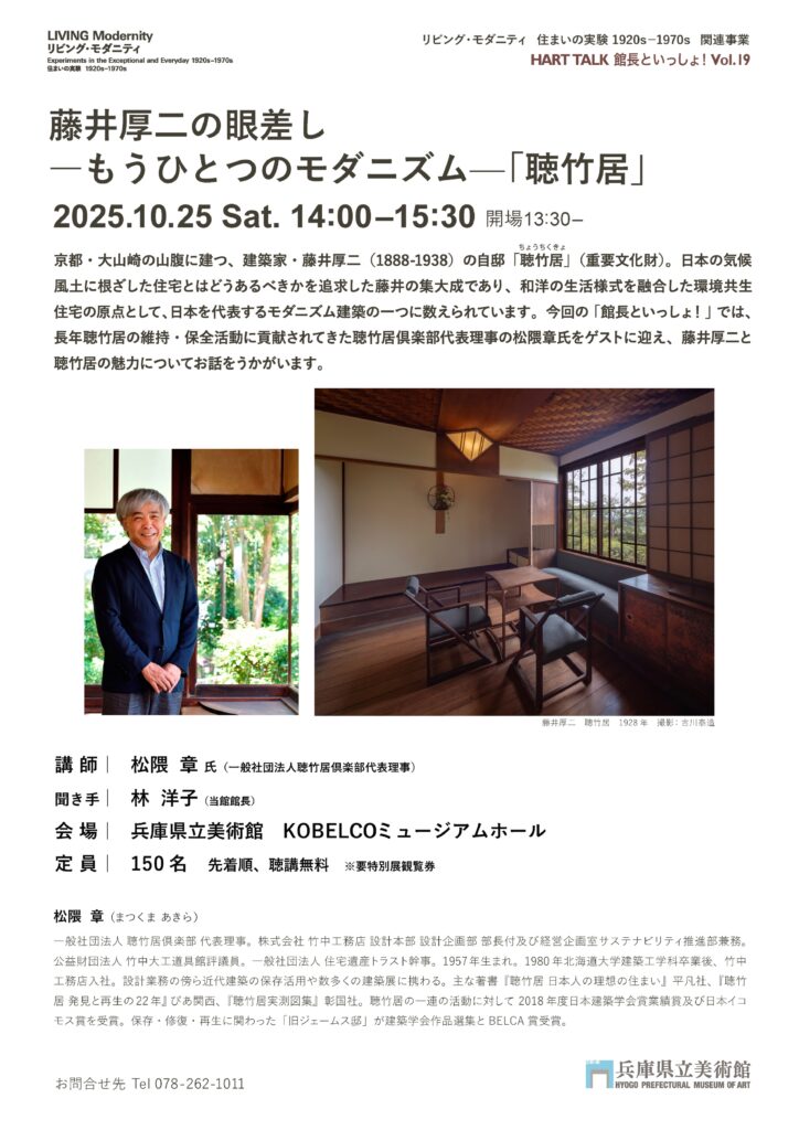 重要なお知らせ10月25日(土)リビング・モダニティ展関連イベント HART TALK 館長といっしょ! Vol.19 藤井厚二の眼差し —もうひとつのモダニズム—「聴竹居」