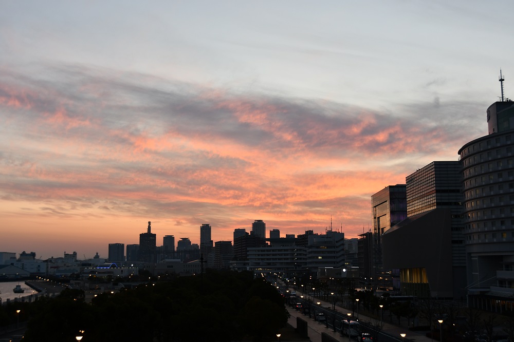 赤色が鮮やかな夕焼けと街の灯りが織りなす美しい景色をご覧いただけます。