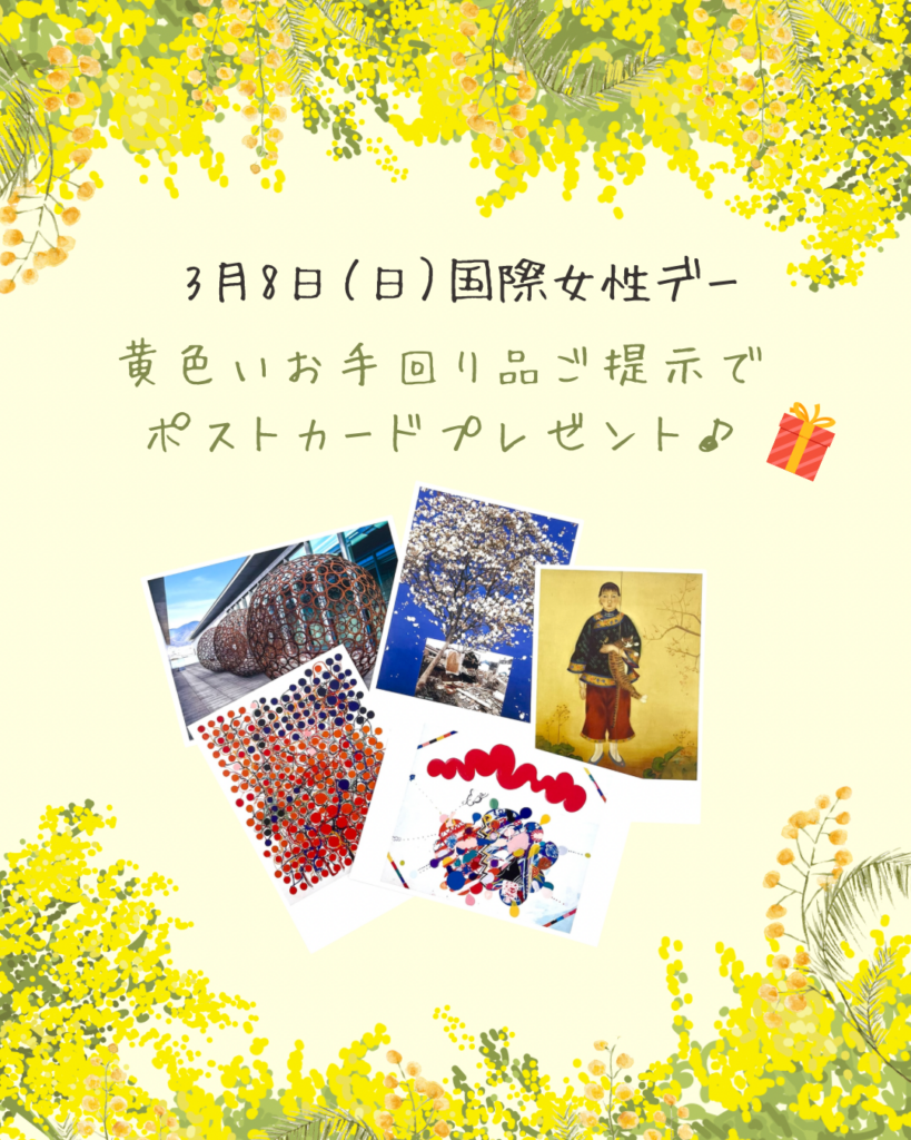 国際女性デー当日に、「コレクション展」3階会場入口で黄色いグッズをご提示いただいた方に、